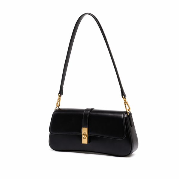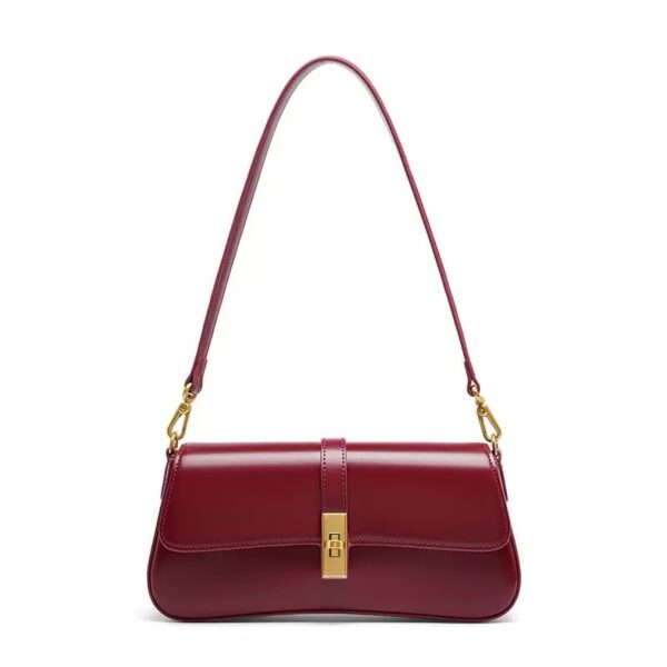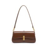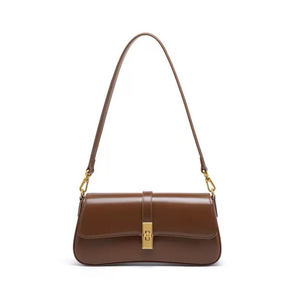 A refined genuine leather shoulder bag designed for timeless elegance, featuring a sleek horizontal silhouette and gold-tone