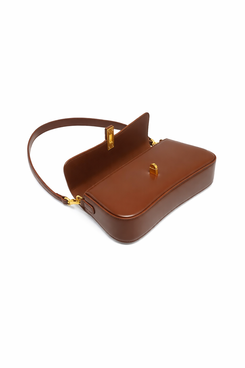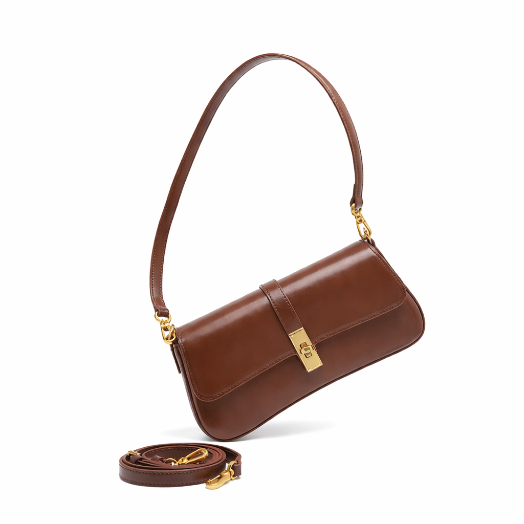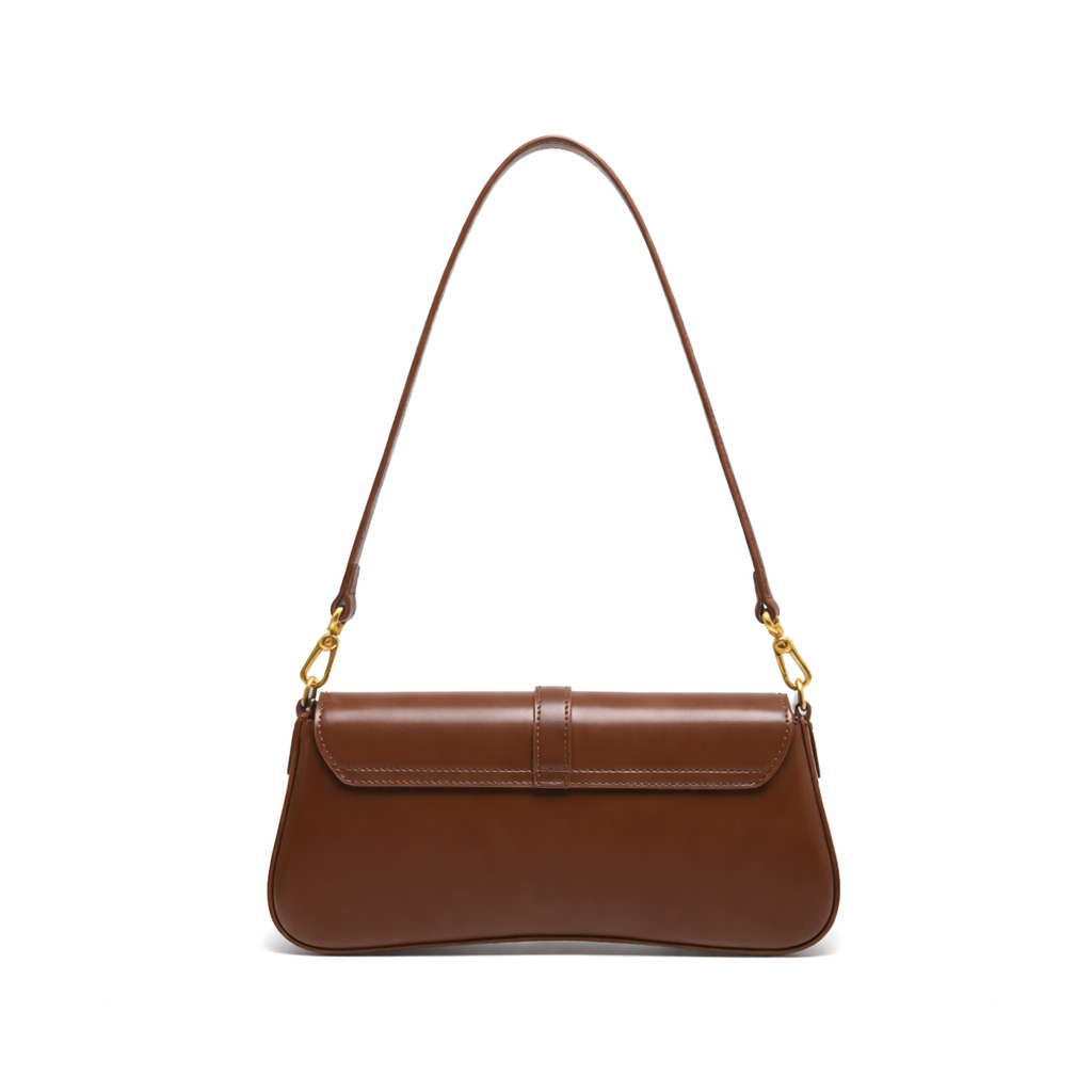 A refined genuine leather shoulder bag designed for timeless elegance, featuring a sleek horizontal silhouette and gold-tone