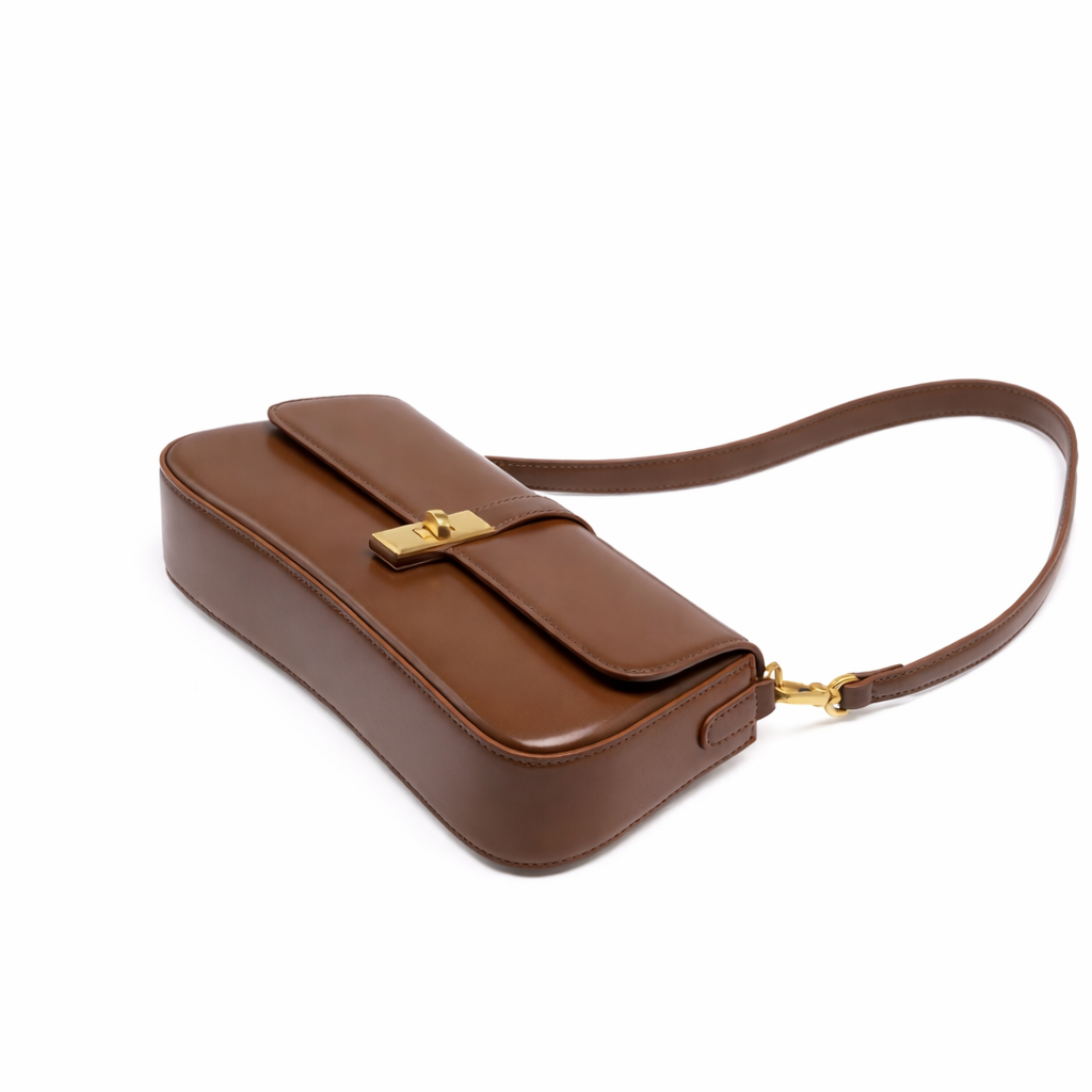 At Belioras, we believe that true luxury is tactile. The Élan is crafted from high-quality genuine leather, chosen for its ability to hold a structured form while remaining soft to the touch. The exterior is intentionally minimal, allowing the natural grain and luster of the leather to shine. This is complemented by a covered flap and a signature gold-tone clasp closure that provides a satisfying, secure click. Inside, the bag is lined with durable polyester, creating a protected environment for your most valuable essentials.