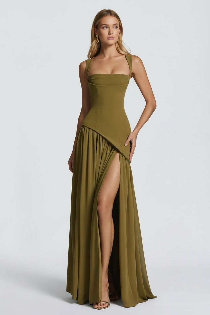 The Olive Asymmetric Midi Dress serves as a definitive statement in contemporary luxury, designed for the woman who commands the room with a focused, editorial presence. In the realm of elite occasion wear, the intersection of draping and structure is paramount; The Olive Asymmetric Midi Dress is a masterclass in clean-lined engineering.