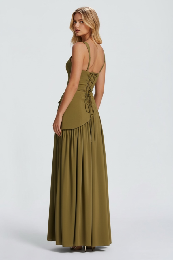By integrating a precision-fitted bodycon bodice with a high-impact asymmetric hemline, this piece creates an aura of effortless authority. The “Olive Green” palette is presented in a smooth, premium weave that offers a professional-grade finish. At Belioras, we believe that true elegance lies in the balance of architectural form and wearable art. To complete your high-impact ensemble, discover our latest arrivals in the Jewelry & Accessories Collection.