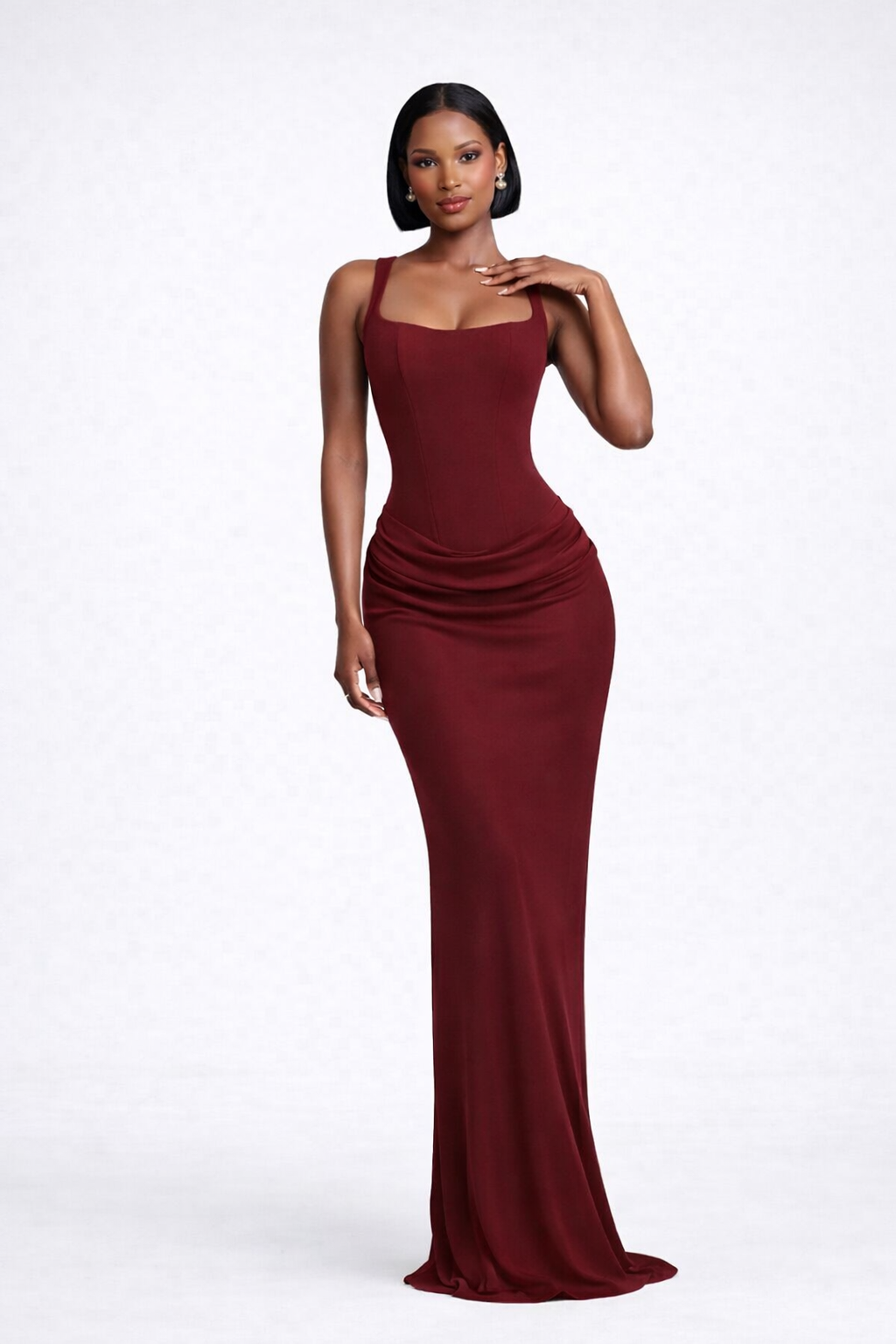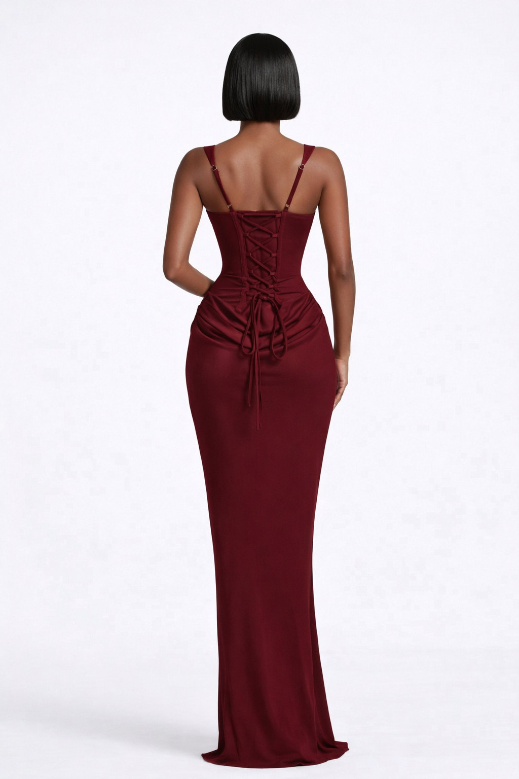 Despite its fluid aesthetic, The Burgundy Silk Corset Maxi is built with a focus on surgical precision. This unit features a high-waist, sculpting corset construction with an adjustable lace-up back, designed to enhance the natural waistline and provide a professional-grade, body-contouring fit.