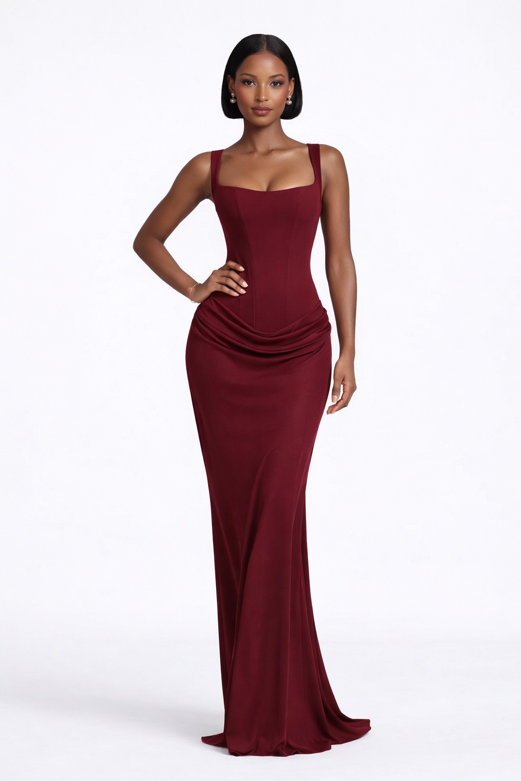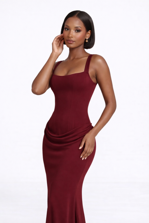 A masterclass in structural elegance, The Burgundy Silk Corset Maxi is designed for the woman who commands the room with statuesque grace. Crafted from premium High-Density Milk Silk, this gown features an adjustable lace-up corset back and dramatic hip draping, providing a bespoke mermaid silhouette with a wrinkle-free, luxury finish.The deep burgundy hue and elegant floor-length flow offer a “liquid” movement effect that balances high-coverage elegance with bold, modern design. Perfectly suited for evening galas, formal weddings, and high-end social celebrations.