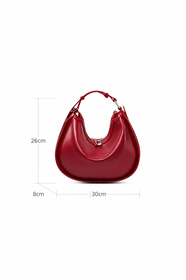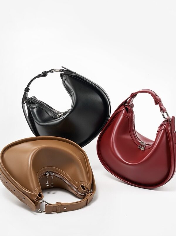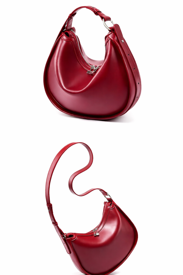 Sculpted from premium two-layer genuine cowhide leather, this crescent-shaped statement piece offers a perfect balance of modern minimalism and daily functionality. Whether worn under the arm or as a shoulder bag, its sleek profile and rich color palette make it the ultimate accessory for the woman who appreciates understated luxury.