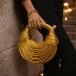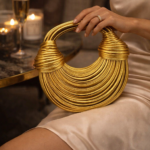 This bag is the “hero” of any ensemble. To maximize its impact, we recommend pairing the Aureon Sculptural Gold Bag with minimalist evening wear. A floor-length velvet gown in emerald green or a sleek navy silk slip dress will allow the gold metallic coils to pop beautifully. For a modern, high-fashion look, pair it with a crisp white tailored suit. Whether you are attending a wedding or a luxury brand event, this bag signals a commitment to architectural elegance.
