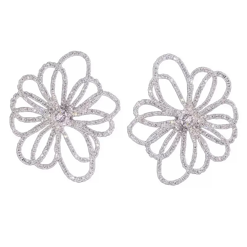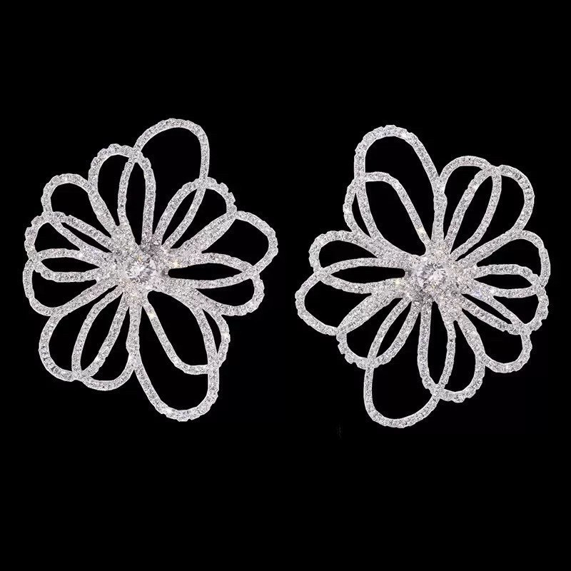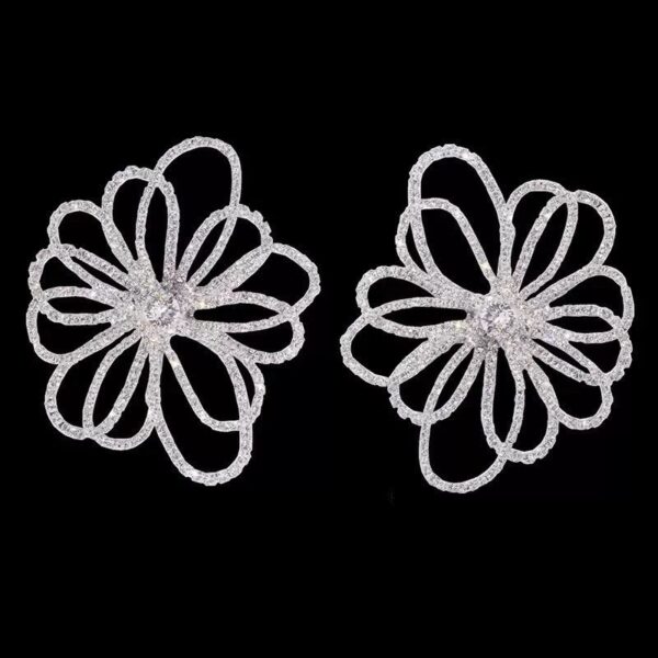 Oversized rhinestone flower earrings designed to bring refined sparkle and feminine elegance to special occasions and elevated everyday styling.